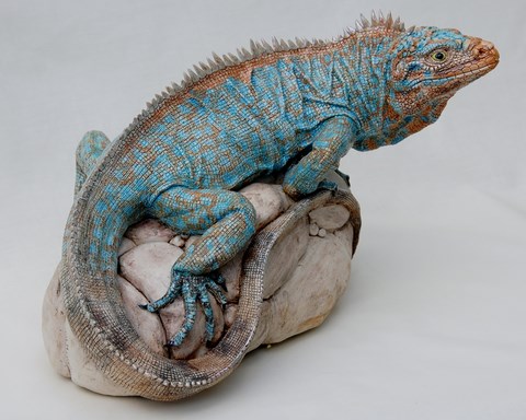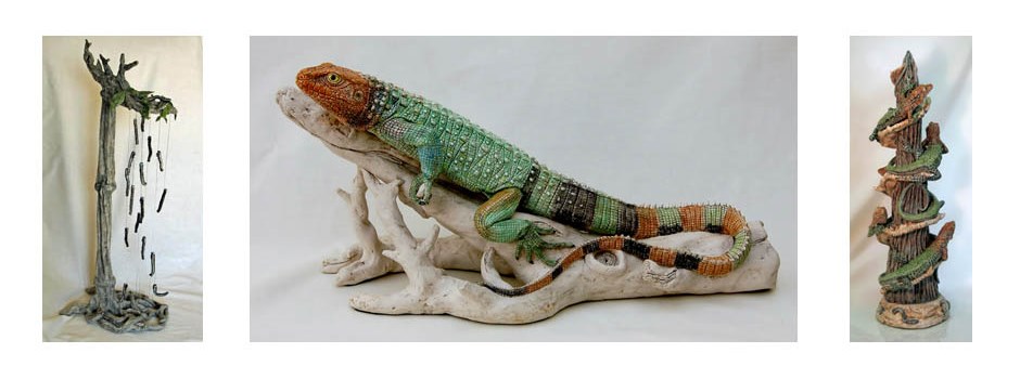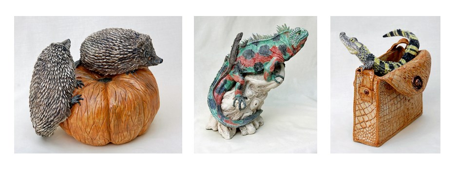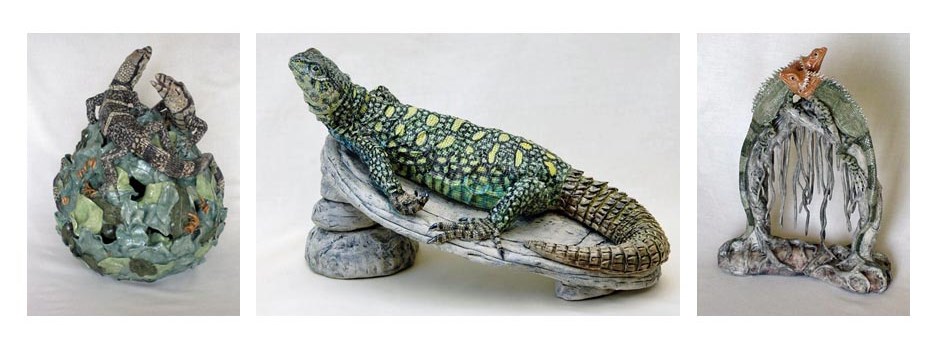 Although reptiles and amphibians predominate as Jill Moger's subject matter, she has created sculptures of many other wild animals. She is particularly drawn to the variety of life on and around the world's coral reefs and has been creating a series of work on this theme. Coral reefs are seriously endangered due to global warming and pollution and Jill believes that artists can help to highlight this impending disaster through their work.